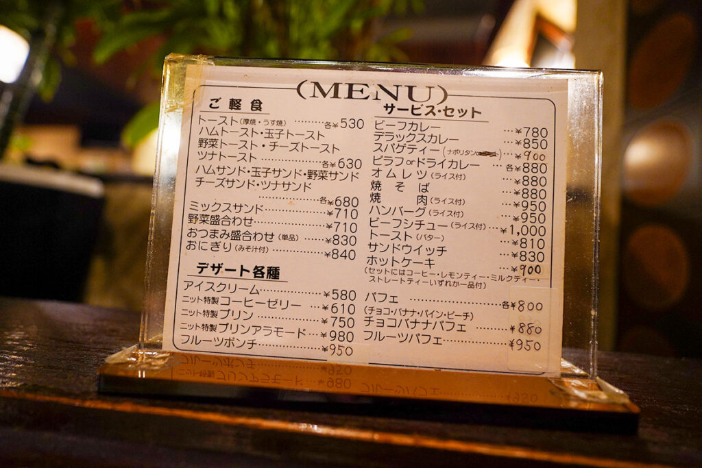 創業は昭和41年(1966年)。ユニークな店名の由来ですが、実はかつてニット(メリヤス)工場だったそうです。工場から喫茶店へと業態を変え、現在は3代目の店主とともに、90代になる女将さんも現役で切り盛りされています。