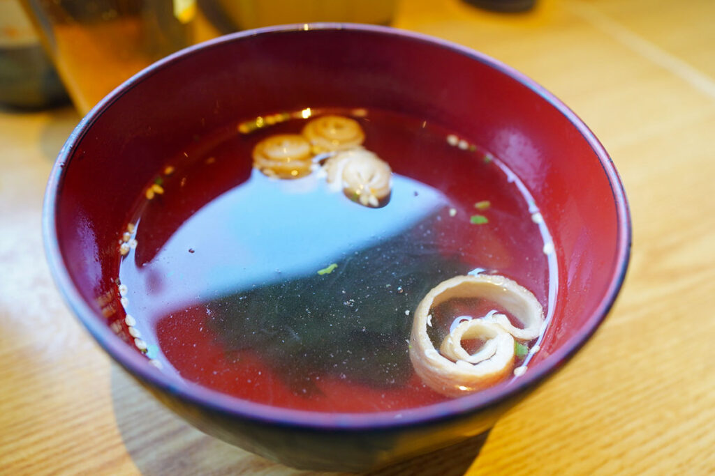 箸休めにとお椀(55円)を追加。 冷たいビールで冷えたお腹を優しく温めてくれます。