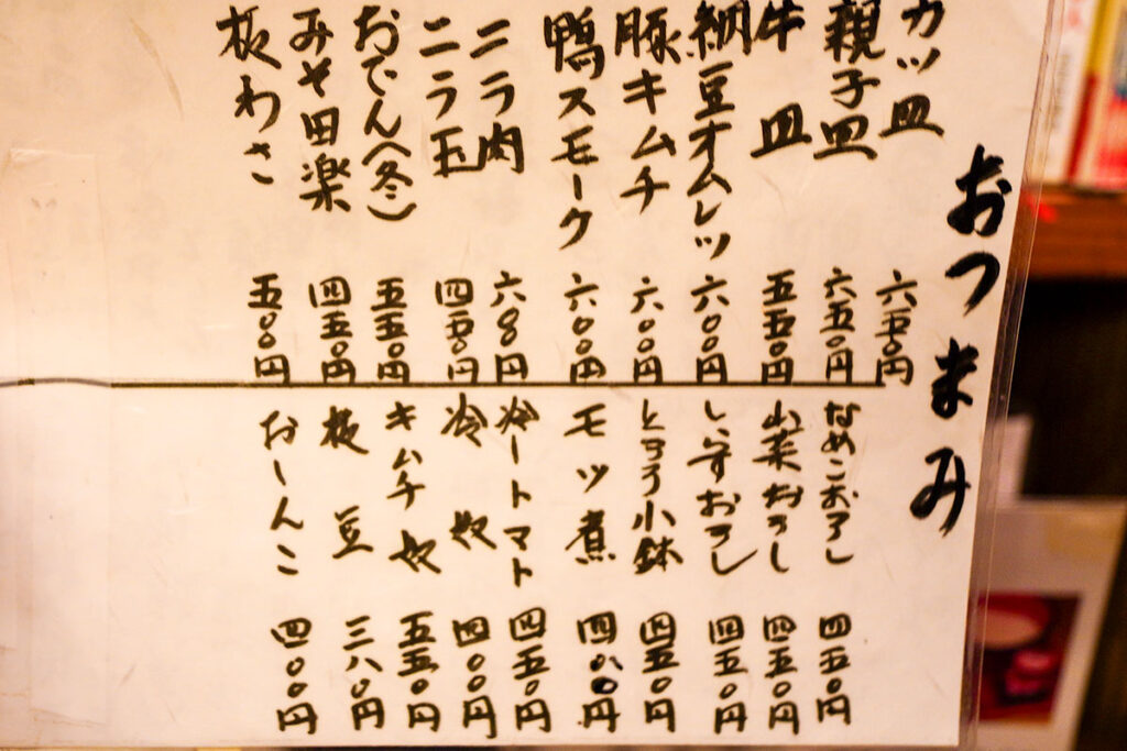 値段も手頃。客層も、近隣で働く人や会社員、銭湯帰りの家族連れ、一人酒を楽しむ常連さんと、昔ながらの東京のムードそのもの。