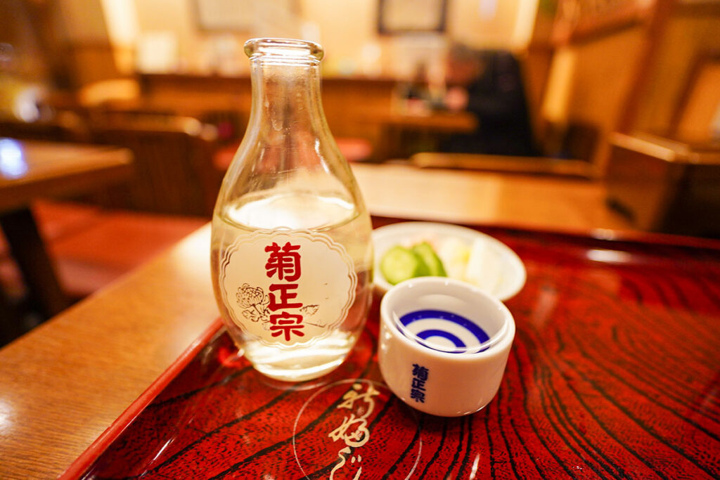 付け合わせのお吸い物を合間に挟みつつ、後半は菊正宗のお燗へ。