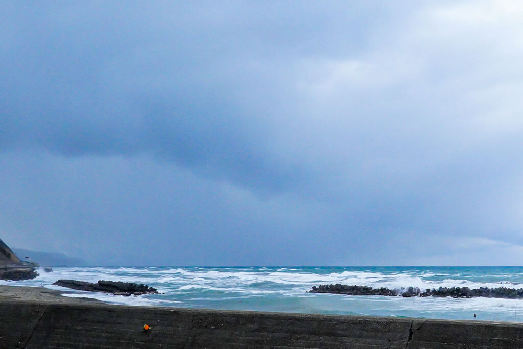 1両編成の列車が走る第三セクター(旧北陸本線)の無人駅である名立駅を降り、ひたすら国道8号線を歩くこと約20分。冬の日本海から吹き付ける風は冷たく、鉛色の空と白い波しぶきが、旅情を通り越してある種の厳しさを感じさせます。