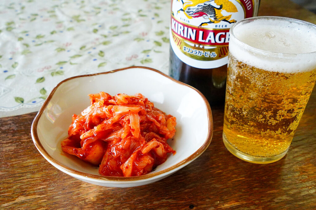 嬉しいことに、サービスのキムチが小皿でついてきます。