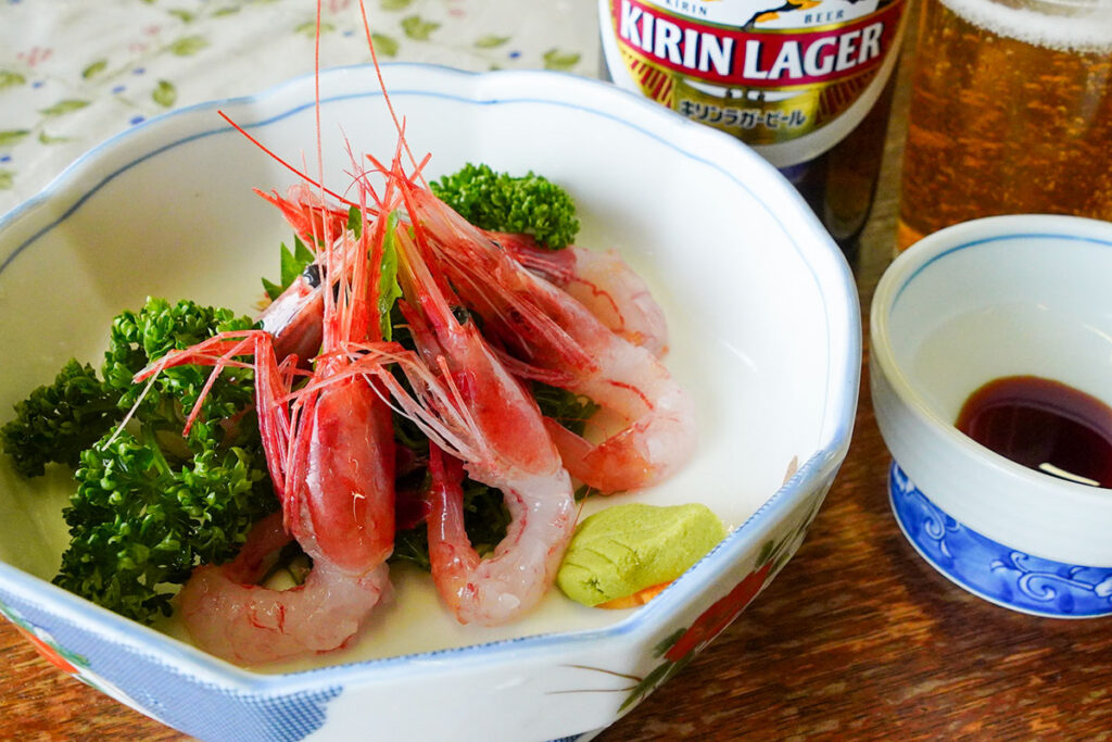 鮮度抜群の甘エビと、冷えた体に染みるタラ汁