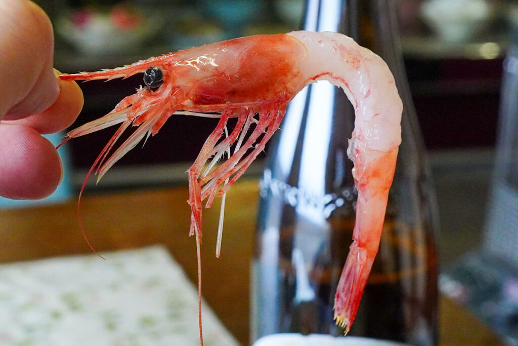 この艶やかな赤色。新潟では赤唐辛子(南蛮)に似ていることから「南蛮エビ」と呼ばれます。見てください、このピンと張ったヒゲを。ヒゲがだらりと下がっていないのは鮮度が良い証拠。