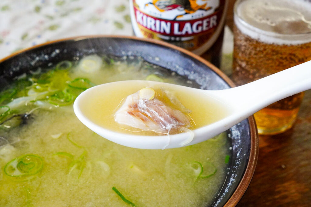 ねっとりとした舌触りのあとに、濃厚な甘みが広がります。醤油を少しだけつけて、ラガーの苦味をぐっとあわせる。海沿いの食堂まで足を運んだ甲斐があったと思える瞬間です。