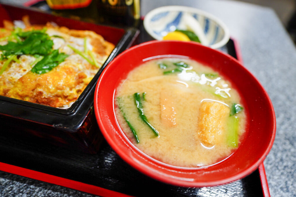 運ばれてきた「カツ重」(1,600円)は、これぞカツ重といったオーソドックスなビジュアル。しかし、ひと口食べればその力強さに驚かされます。ちなみに、お店限定でカツ丼は1,150円と手頃になるので、お重でなくても良い方はカツ丼がオトクでオススメ!
