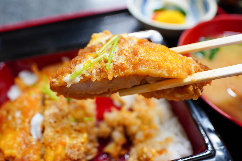 割り下のコクがグイっと押し寄せてくる濃厚な味わい。蕎麦屋ならではの、出汁の効いた甘辛いツユが衣に染み込み、卵でふんわりととじられています。カツはしっかりとした旨味がありながら、しっとりと吸い付くような食感。吟味した国産豚を使用しているそうで、脂身の甘さが口いっぱいに広がります。