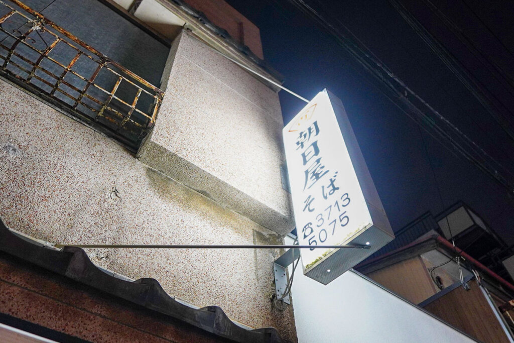 なんでわざわざ”東山の”とつけているかというと、中目黒には「朝日屋」という同名の蕎麦屋さんがもう一軒、目黒川沿いにあるから。そちらも名店なのですが、今回は一層いぶし銀の朝日屋さんのほうを訪ねます。