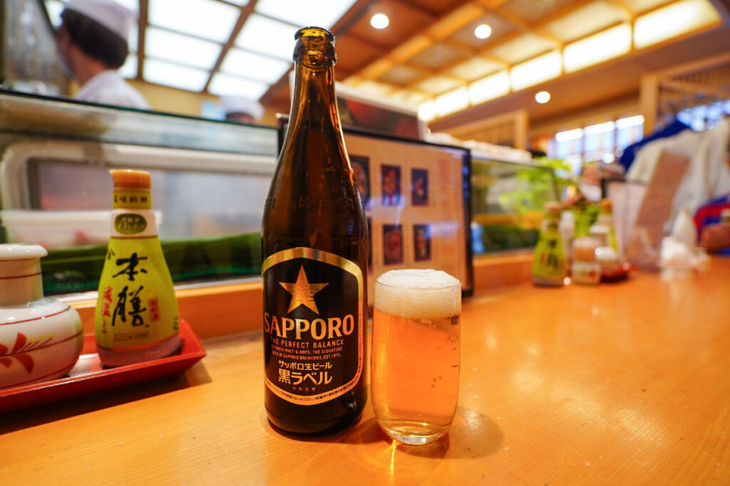 活気ある店内で、職人さんの声を聞きながら飲むビールは格別です。