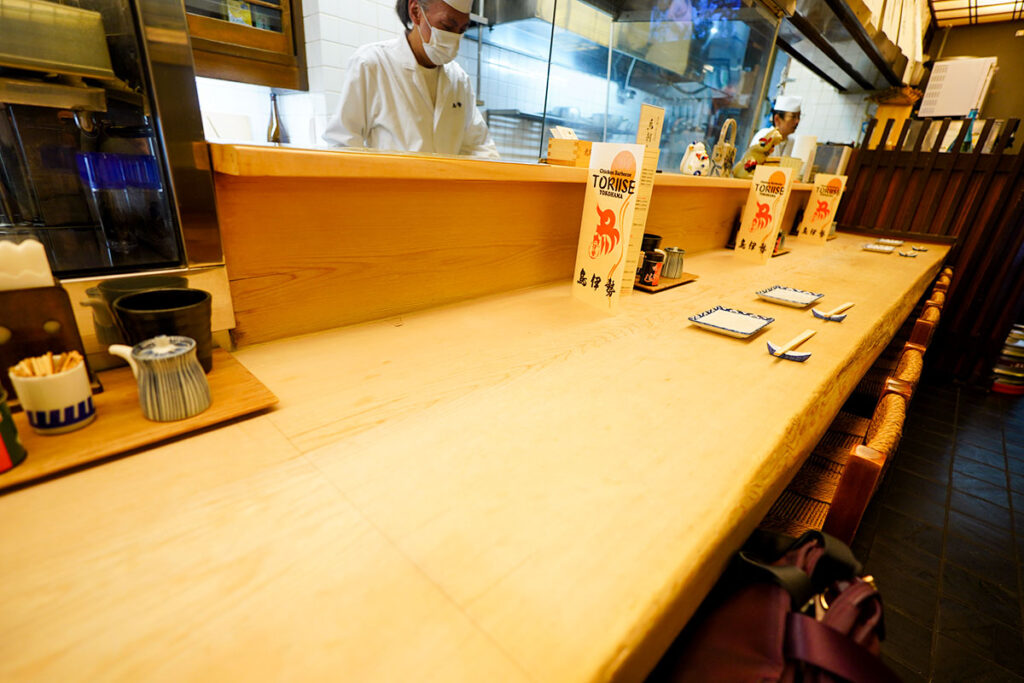 店内は職人の手捌きを間近で見られる白木のカウンター席と、広々とした座敷席が広がります。