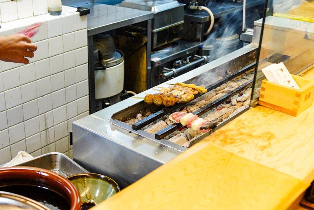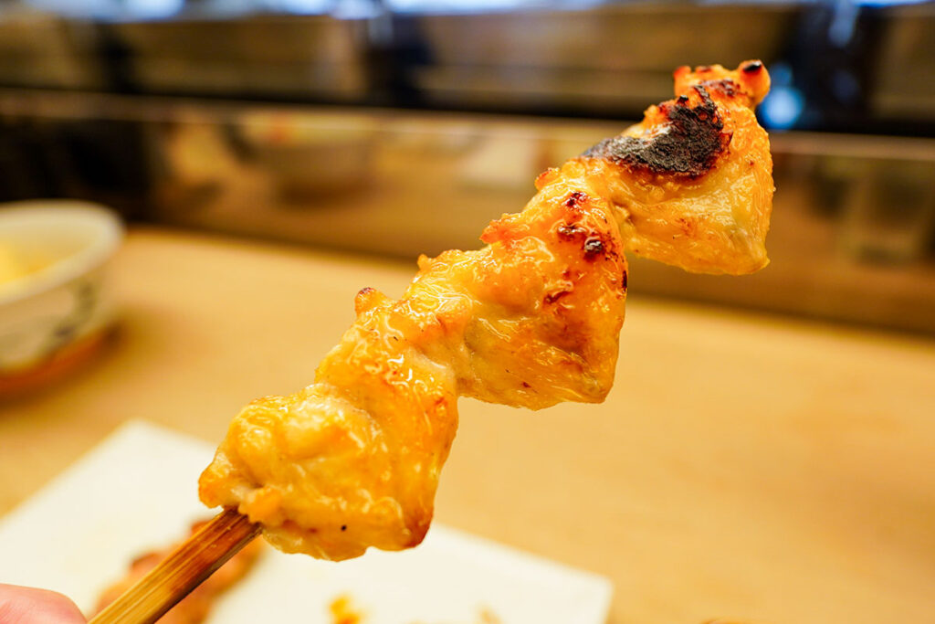 新鮮な鶏肉がその日のうちに店へ届き、熟練の職人が備長炭で香ばしく焼き上げる。