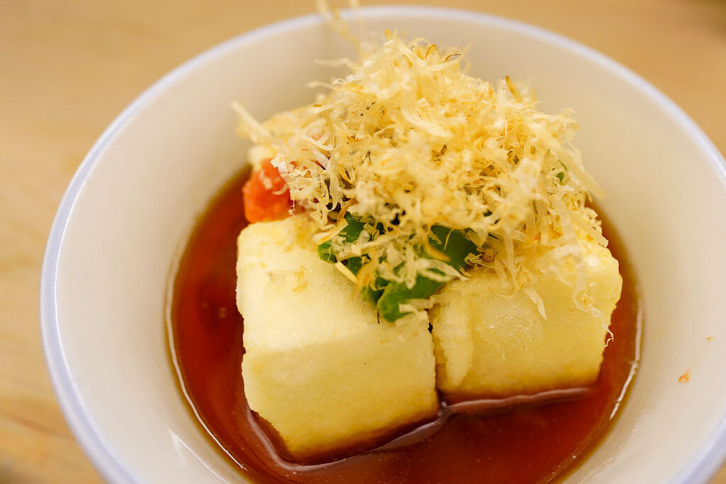 串を数本つまんだところで「揚げだし豆腐(990円)」を追加。出汁がしっかりと染み込んだ豆腐は、焼き鳥の合間の箸休めにぴったり。