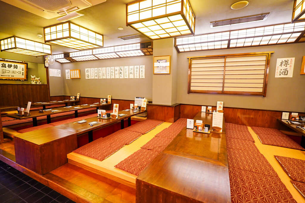 一人で静かにグラスを傾ける客から、賑やかに宴会を楽しむグループまで、多様な用途で利用されています。この日も畳敷きの小上がりでは、ベテランのノンベエさんたちが宴会を楽しまれていました。