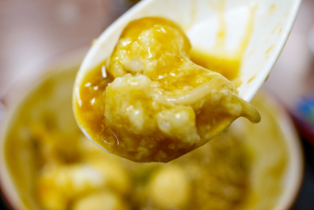 名前の「Ojiya」が示す通り、底にご飯が敷き詰められている構造。ご飯の上にはとろろが重なり、カレーつゆが早く染み込みすぎるのを防ぐ防壁の役割を果たしています。最後にとろろ、ご飯、カレーが混ざり合ったおじやを〆感覚でいただいて大満足。すっかり満腹になりました。