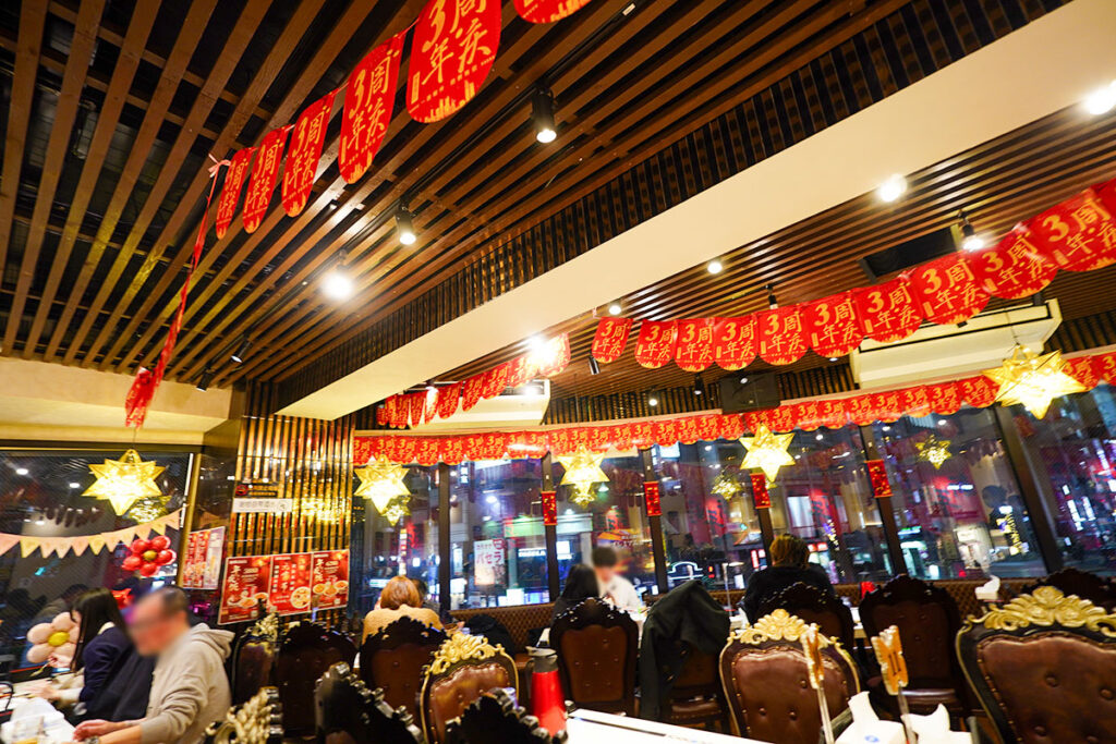 店内に入るとお客さんは私たち以外全員が中国語を話していました。予約の電話をしたときも、第一声が中国語だったので想像していましたが、これはすごい。完全に大陸旅行気分です。
