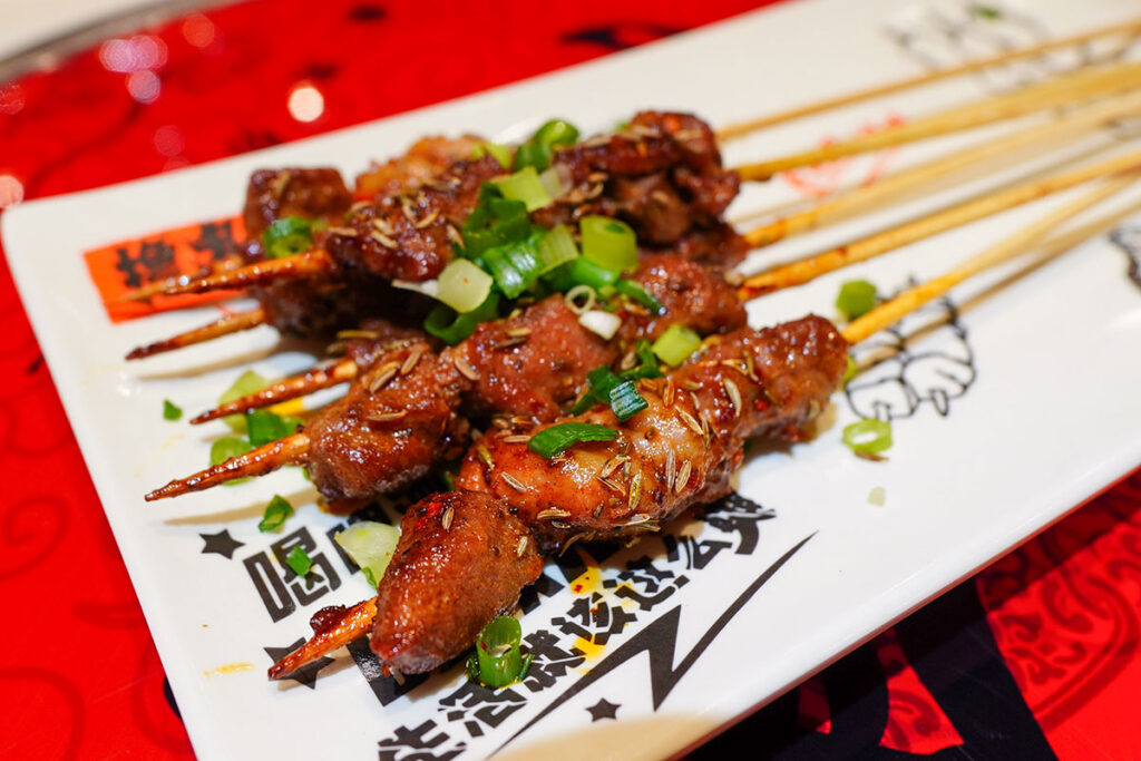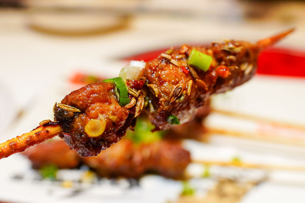お酒のお供として最初に選んだのは羊肉串です。中国の酒場では定番の一品。