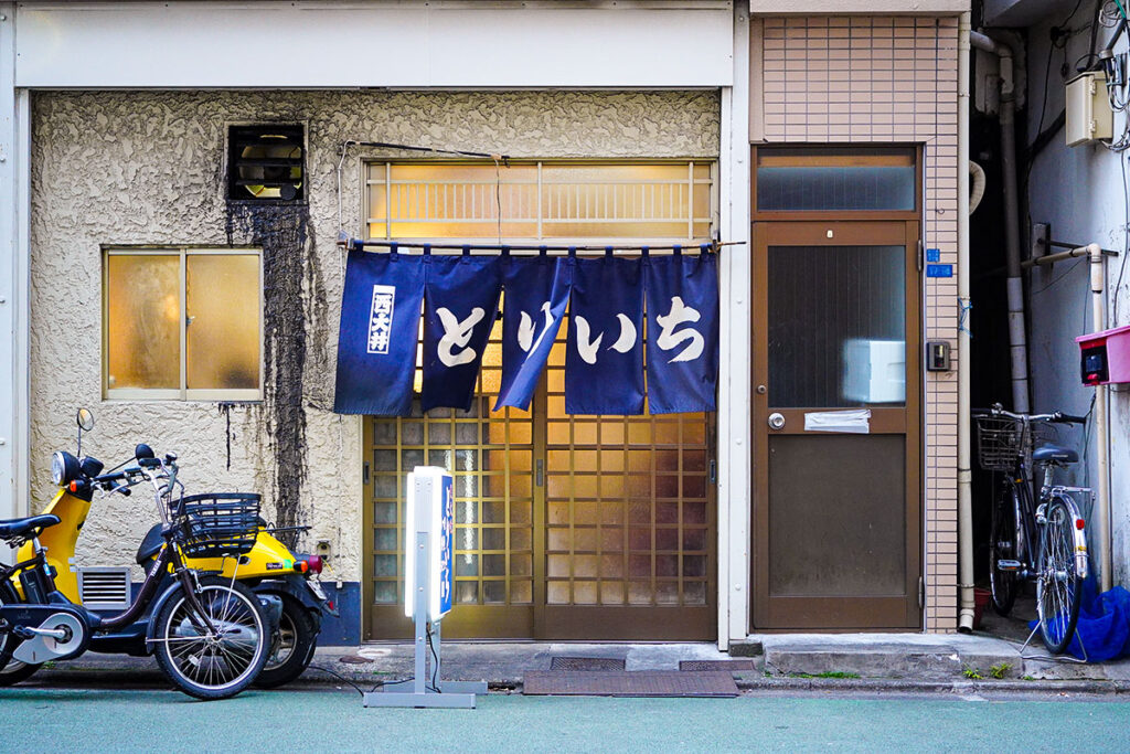 西大井駅から歩いて4分ほど。大井町からも徒歩15分。住宅街の路地に、紺色の暖簾が見えてきます。創業当時の面影を残す外観は、昔ながらの大衆酒場そのもの。