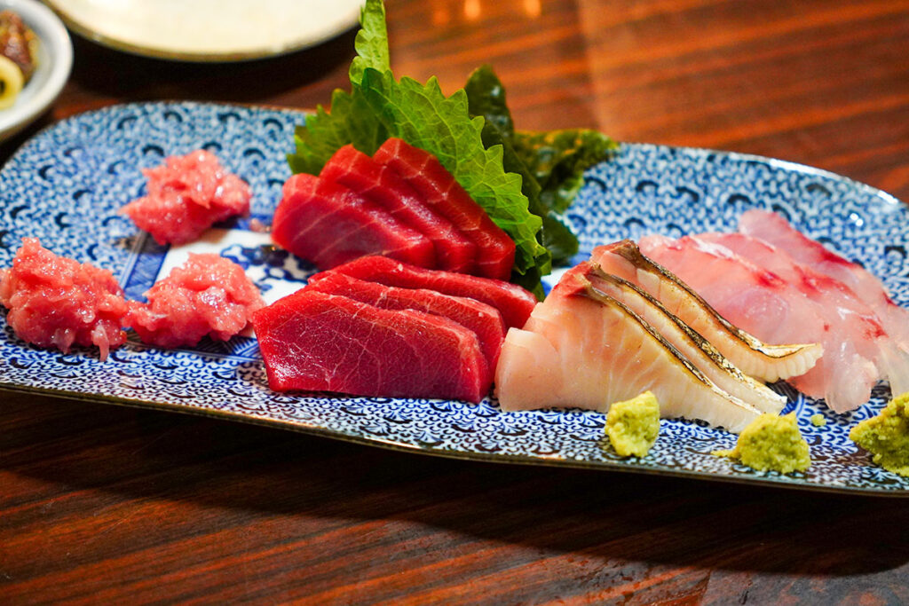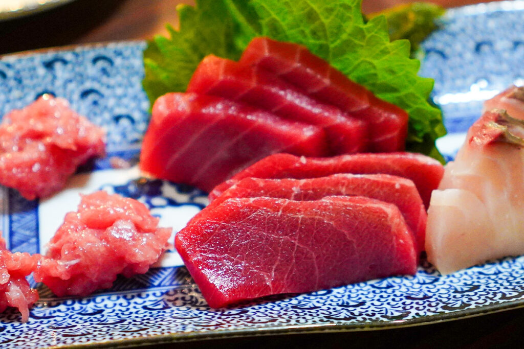 有名寿司店も利用する豊洲の仲卸から仕入れている魚は、鮮度も旨味も抜群です。赤身の濃い味わいや白身の引き締まった食感を味わうと、ここがもつ焼き店であることを忘れてしまいそうです。