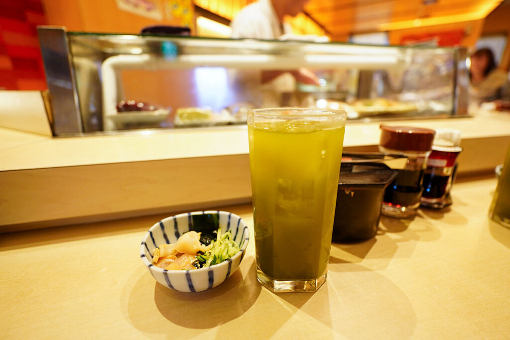 まずは名物の緑茶ハイで喉を潤しましょう。