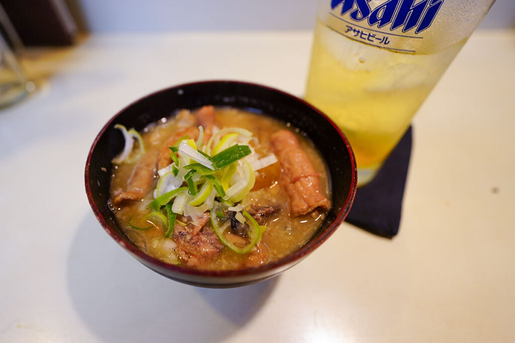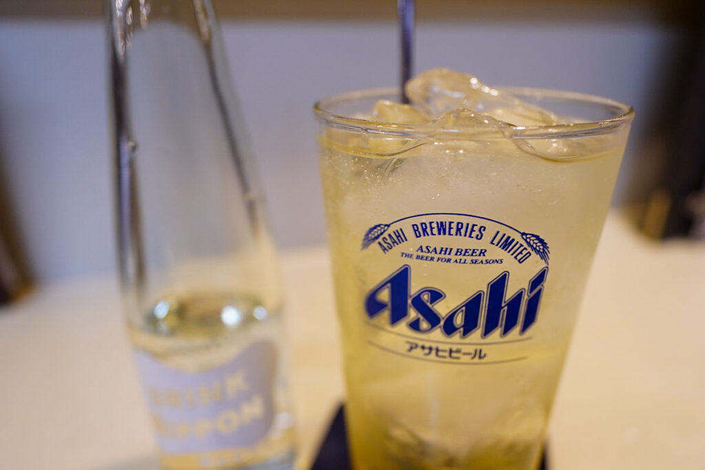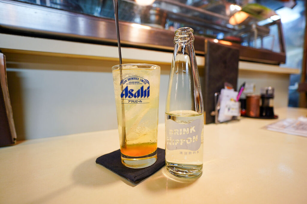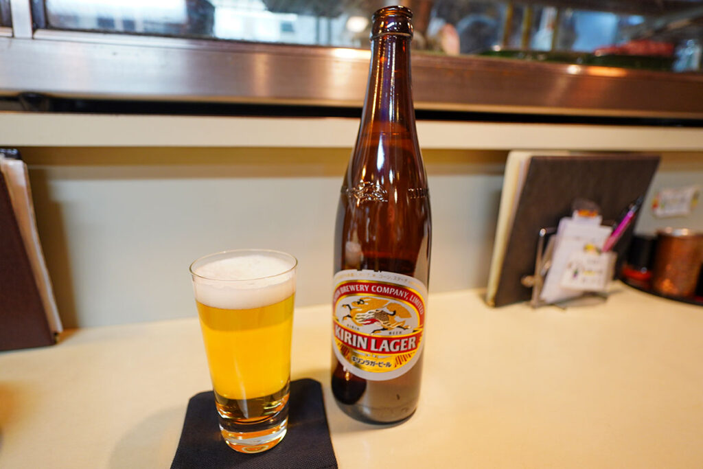 まずはキリンラガービールの大瓶(750円)を注文しました。しっかり冷えたグラスに注ぎ、喉を潤します。