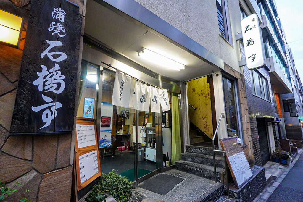 本郷三丁目駅から徒歩5分ほど。湯島や不忍池からも徒歩圏内ですが、本郷台地特有の高低差がある地形を抜けた先のレトロなビル1階に『蒲焼 石橋亭』は静かに佇んでいます。