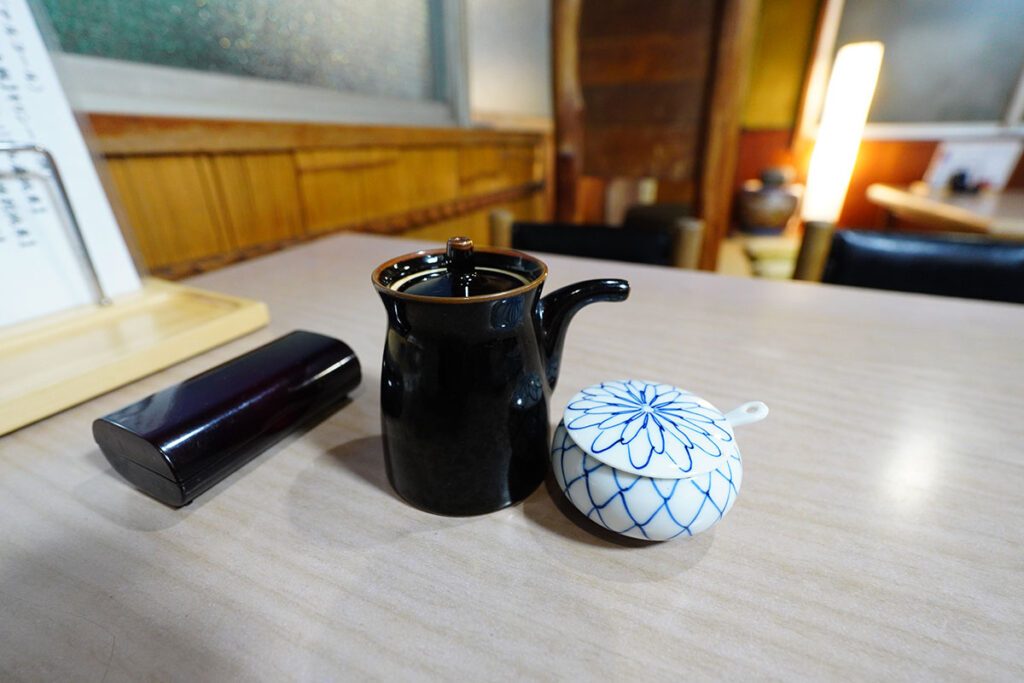 卓上には追加用のタレや粉山椒も常備。タレの染みた熱々のご飯に直接山椒を振ることで、鰻の風味を損なわずに爽やかな香りを楽しめます。