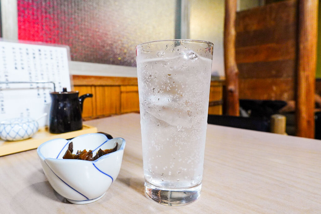 麦焼酎「中々」のソーダ割りを追加し、爽快な余韻とともに大満足。いやいやそれにしても、ここは安くて美味しい。