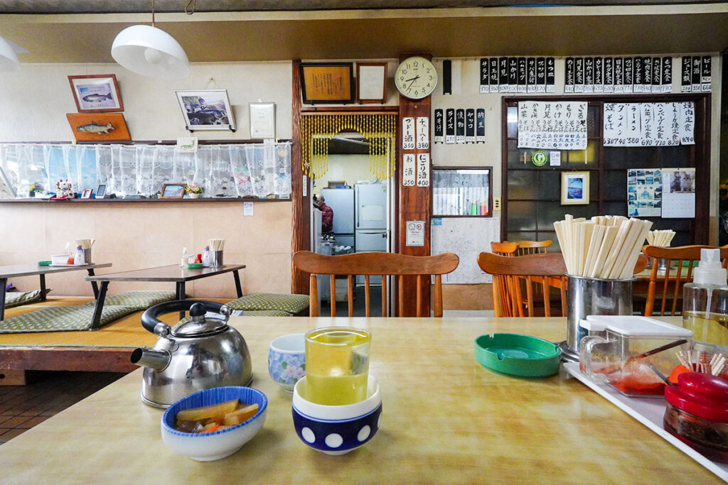 80代のご夫婦が店を切り盛りし、職人気質のご主人と話好きで明るい女将さんの温かな接客に惹かれ、親子三代で足を運ぶ常連さんも多いそう。朝7時半から夜8時半まで中休みなしで営業しており、夜勤明けの鉄道マンや農作業に向かう人々の胃袋を支えてきた歴史を持ちます。