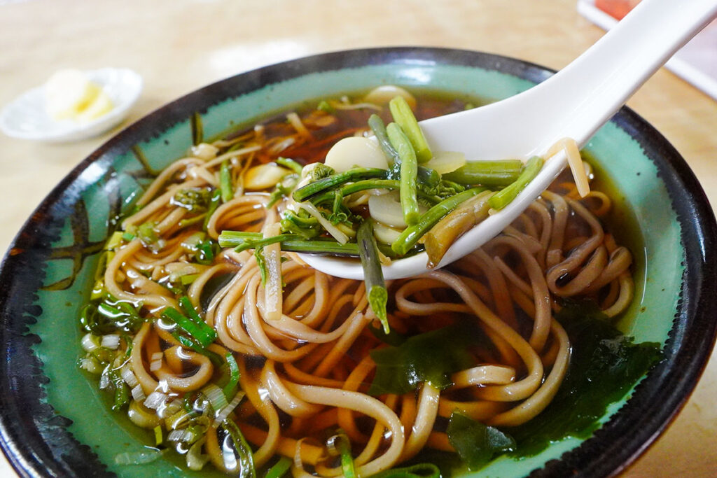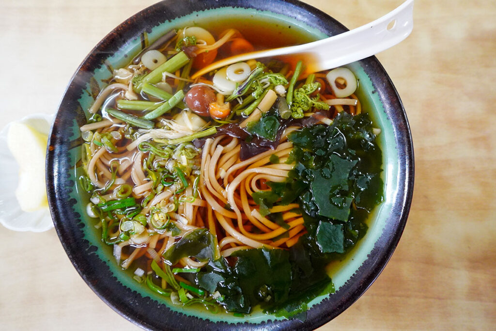 締めには「山菜そば」をいただきます。