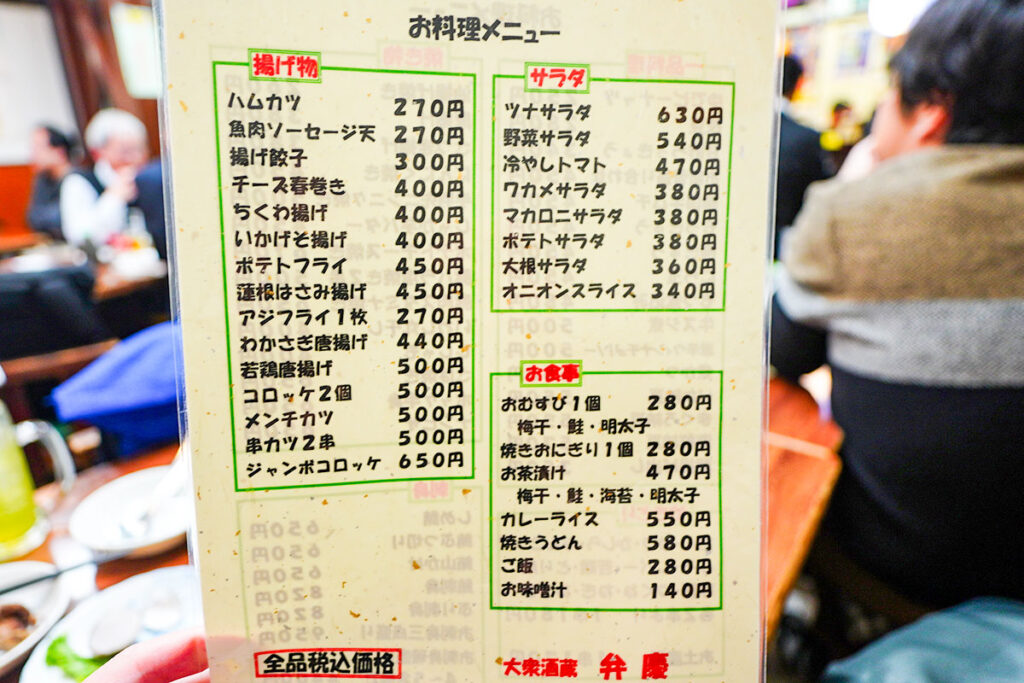 北口から徒歩数分の場所にある『弁慶』は、店主さんのお話によると1956年(昭和31年)頃の創業。昭和の頃は店の向かいに国鉄の現業機関があり、大動脈を支える鉄道マンたちが通い詰めたようです。
