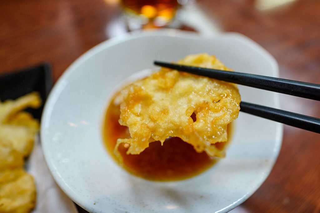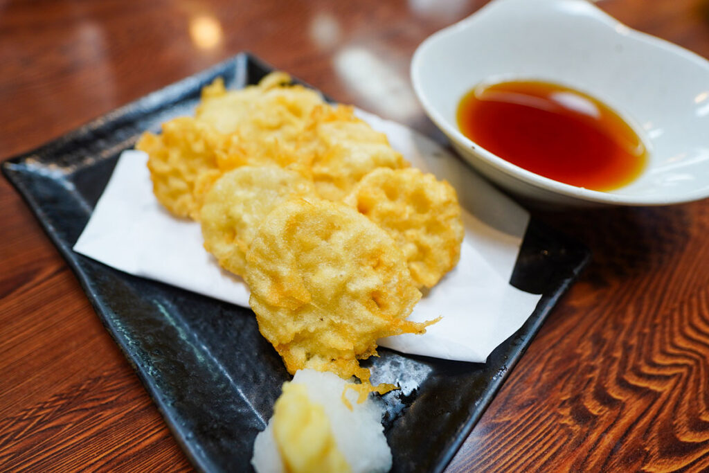 香ばしく焼き上げられた銀杏の串焼きや、衣がサクサクの「蓮根はさみ揚げ(450円)」をつまむと、お酒のピッチが自然と上がっていきます。それにしても、現在の物価でこの価格は素直に言って安いですよね。