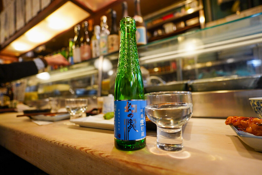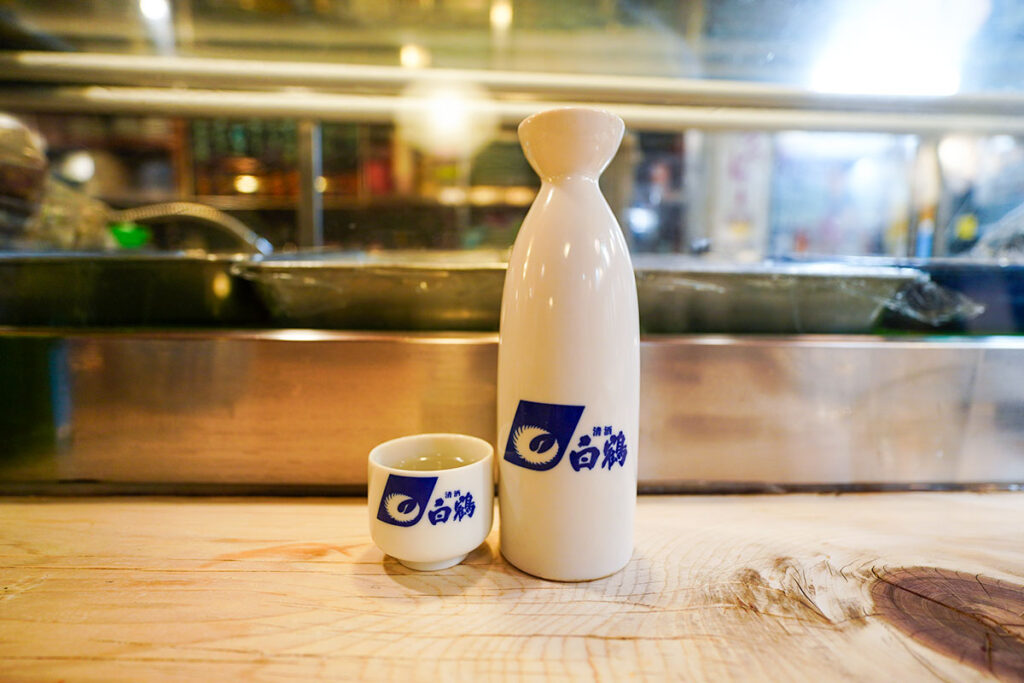 今回は富山の銘酒「幻の瀧 吟醸 生貯蔵」の一合瓶を選びました。フレッシュでスッキリとした飲み口が、濃いめの味付けの肴にぴったり合います。最後は白鶴の熱燗で、冷えた体をじんわりと温めました。