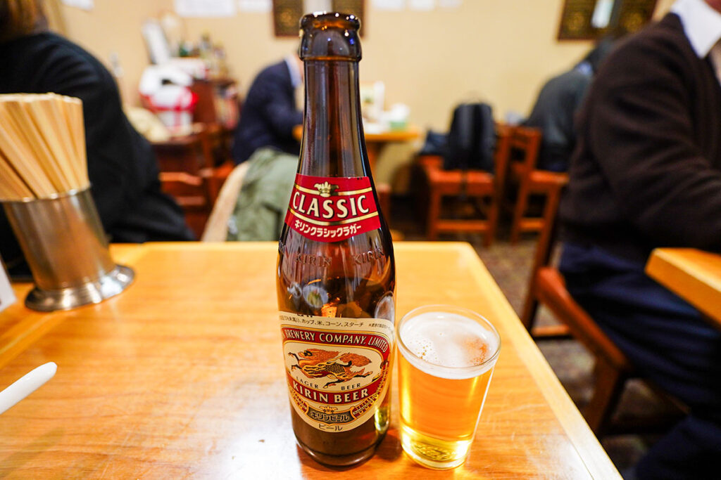 まずは「キリンクラシックラガー」の中瓶を注文。いぶし銀の中華には、赤い聖獣ラベルが似合います。