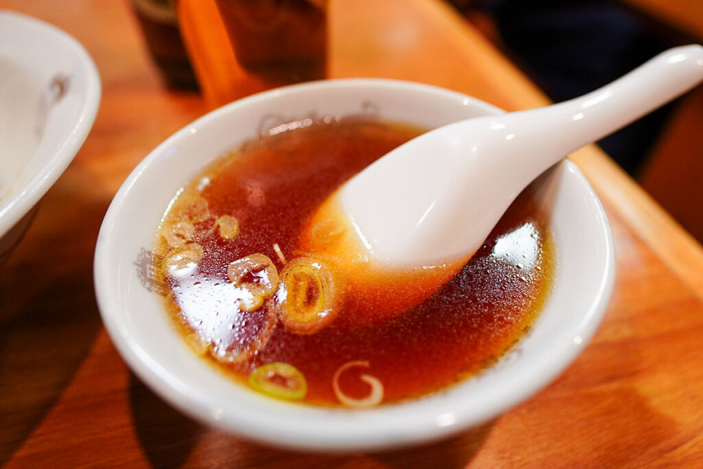 付属の中華スープも、ネギが散らされた落ち着く味わいです。