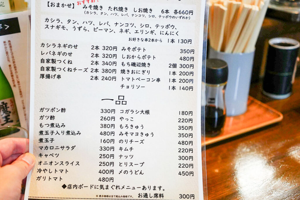 店主さんは、にんにくの効いたみそだれ発祥の店である『㐂よし』(1969年創業)の出身。『㐂よし』のみそ焼きは、東京の西側で高い人気を誇る『秋元屋』の創業者が惚れ込み、修業に励んだことで知られています。現在広く親しまれている東京のやきとん文化に大きな影響を与えた系譜を受け継ぐ、由緒正しい酒場に他なりません。
