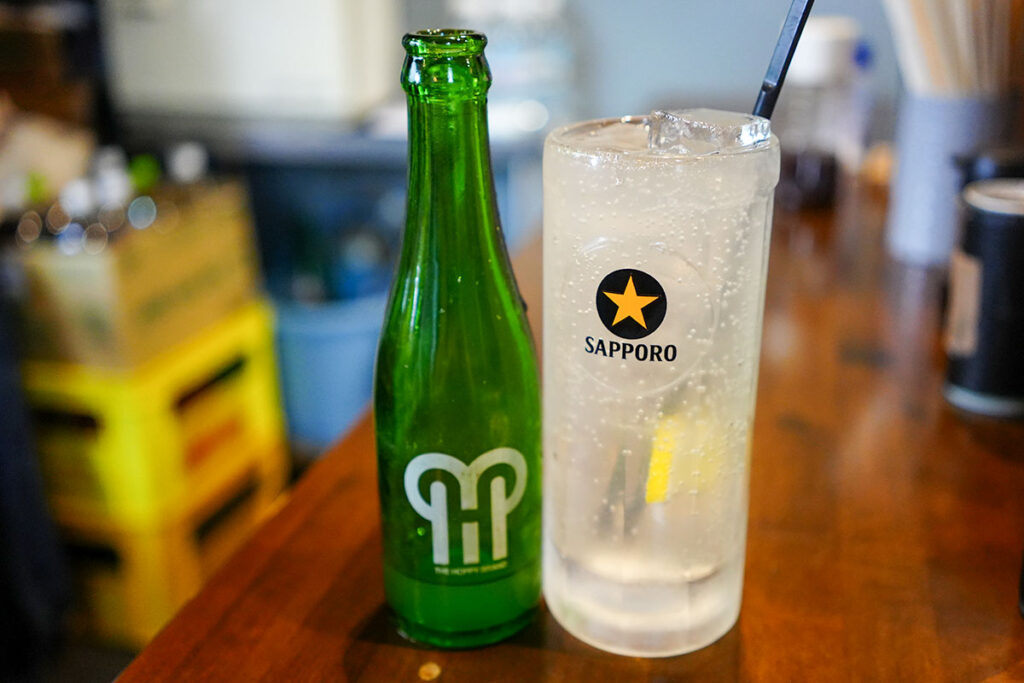 続いてのお酒は「レモンサワー(450円)」へ。割材にホッピービバレッジ社の瓶が使われているあたりに、店主のこだわりが感じられます。