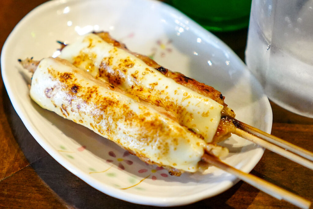 スッキリとした酸味が口の中をリセットしてくれたところで、「自家製つくねチーズ(2本380円)」を追加。ふっくらとしたつくねに、とろけるチーズのコクが重なり、大満足の味わいです。