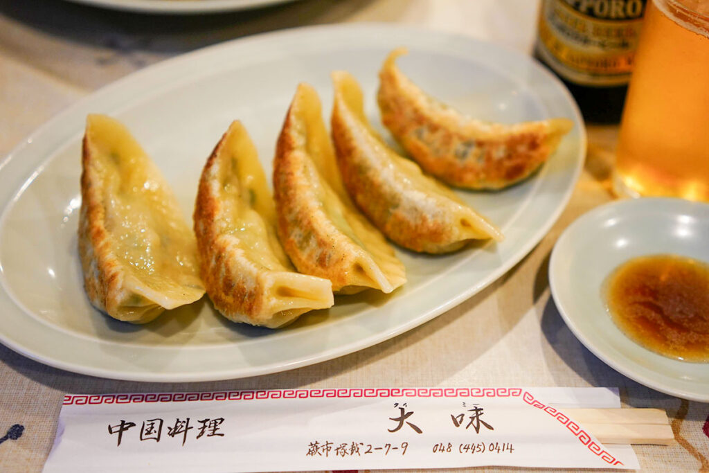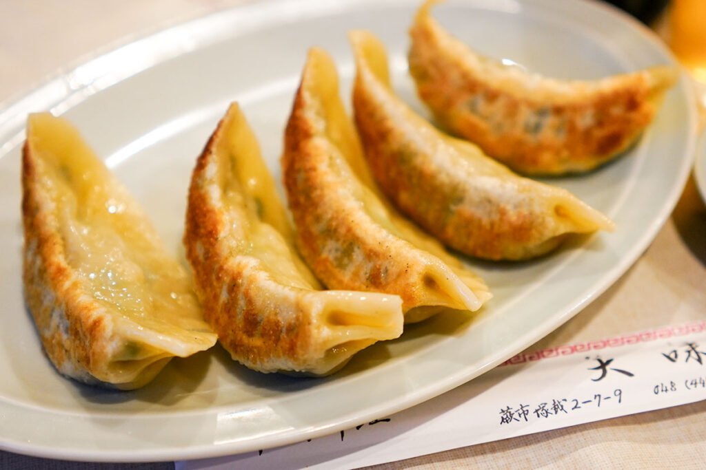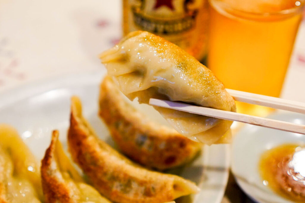分厚くもっちりとした皮の中に、お肉と野菜の旨味がみちみちに入っており、噛むほどに豊かな肉汁があふれ出します。冷えたビールとの相性も抜群。